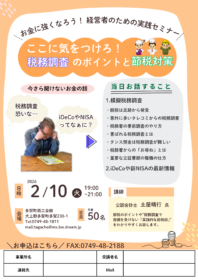 多賀町商工会主催の税務調査のポイントと節税対策セミナーのご案内です。